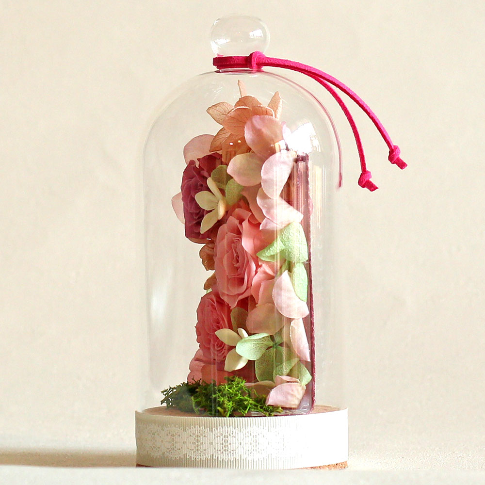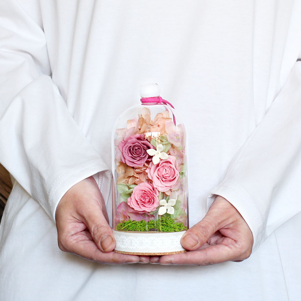 | 資材 | リボン、アクリル製プレート、コルク付きガラスドーム、お手入れ説明付き |