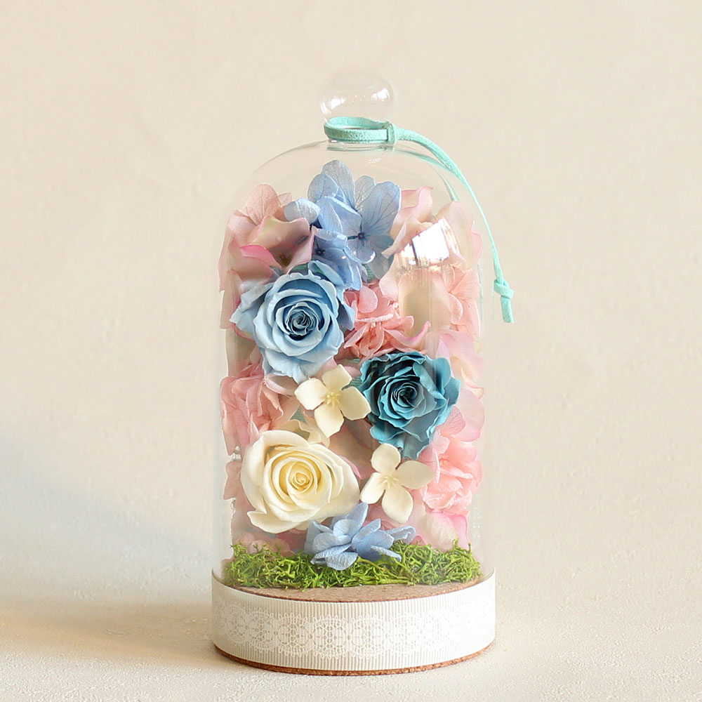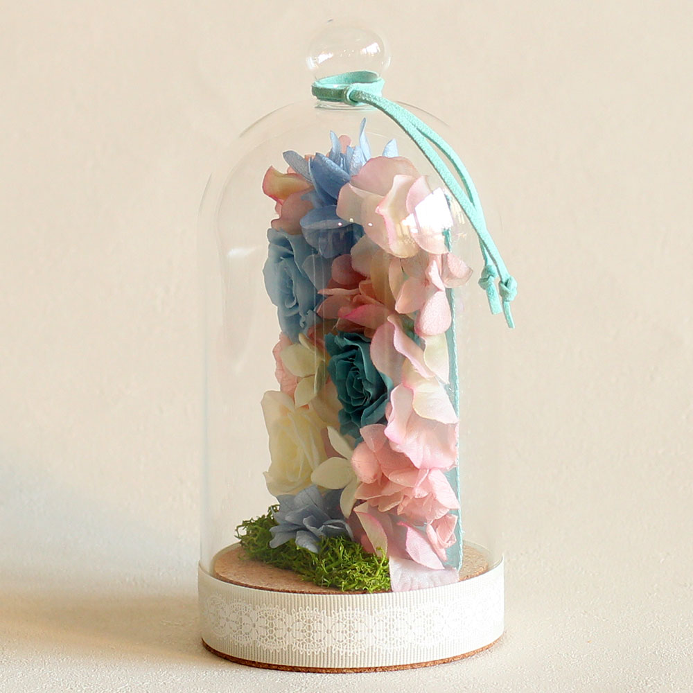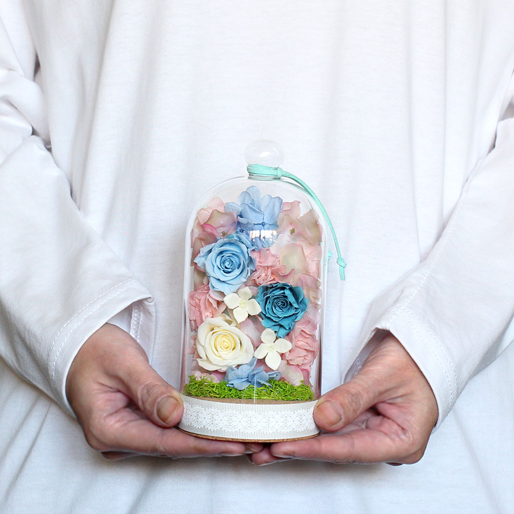 | 資材 | リボン、アクリル製プレート、コルク付きガラスドーム、お手入れ説明付き |