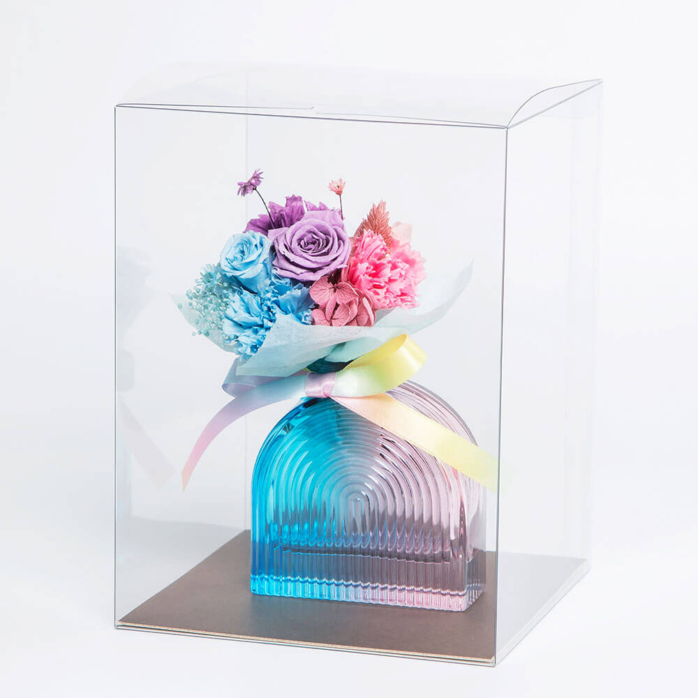 | 資材 | リボン、ラッピング、ガラス製花器、クリアケース入り、お手入れ説明付き |
