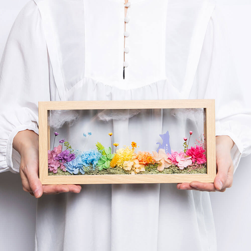 優しい虹の花園に見立てたフレームアレンジ