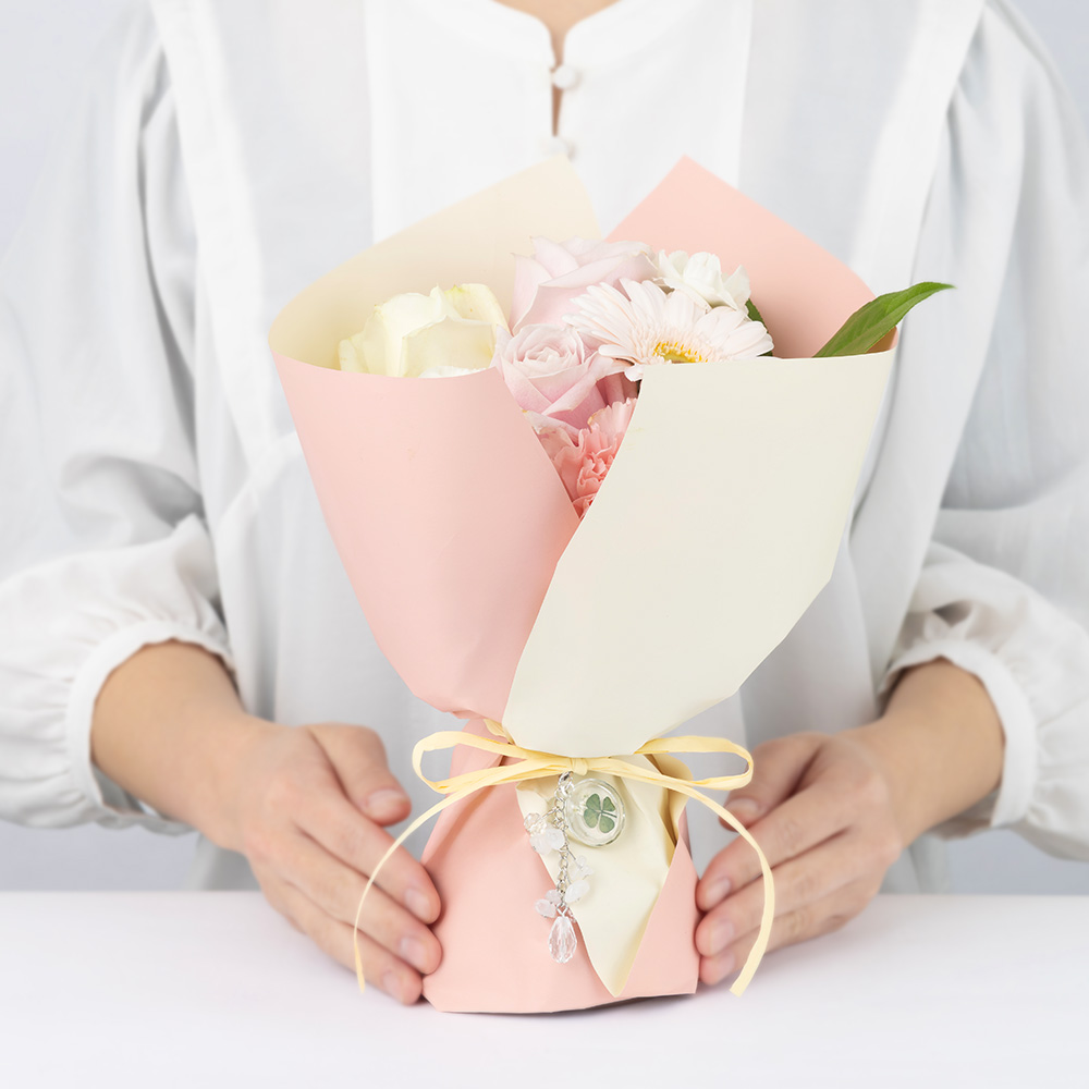 花瓶に移し替える必要がなく、そのまま飾れるブーケとなっておりますので、手軽に飾っていただけます。
