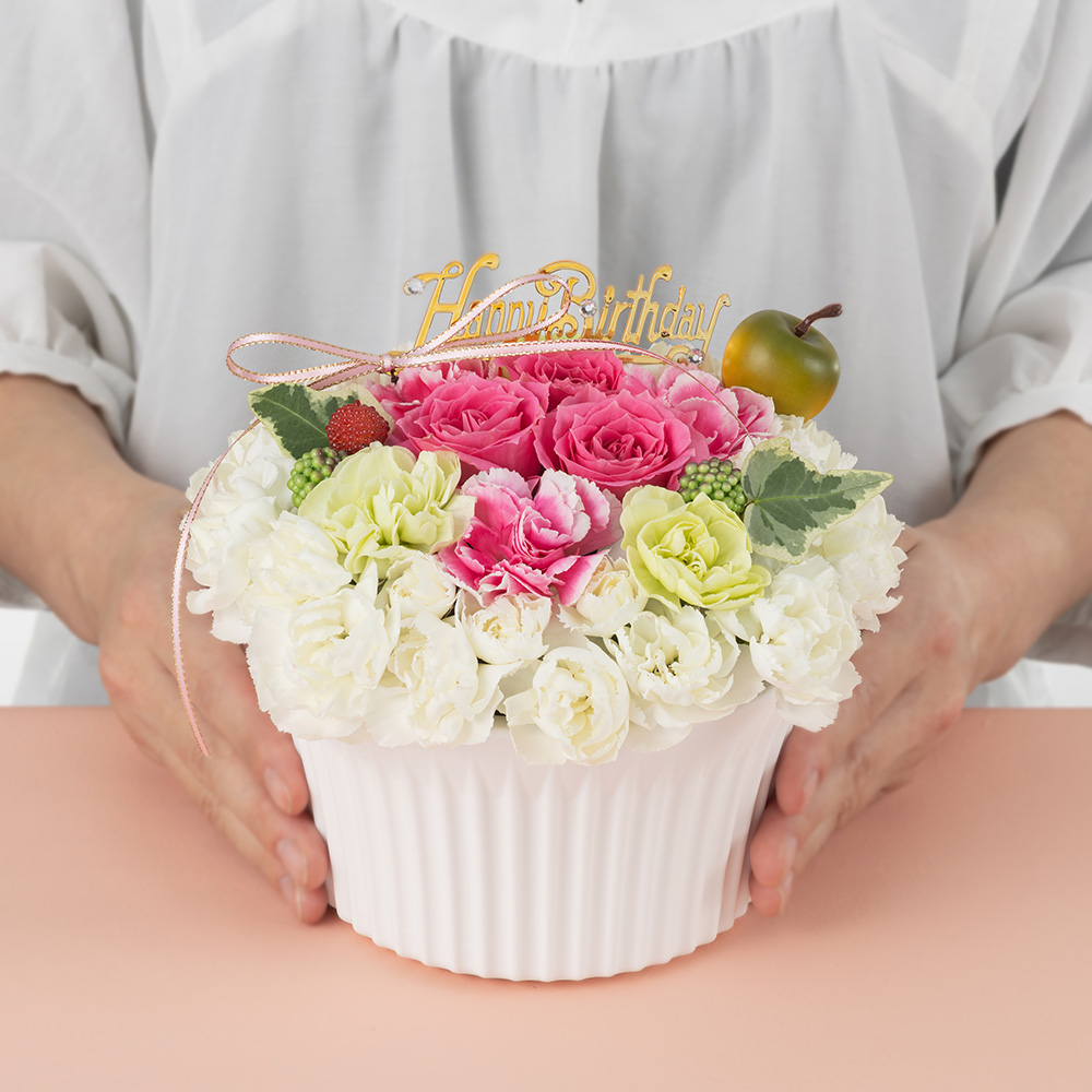 アレンジメント「花咲くバースデーケーキ〜4月 ダイヤモンド〜」のオススメポイント