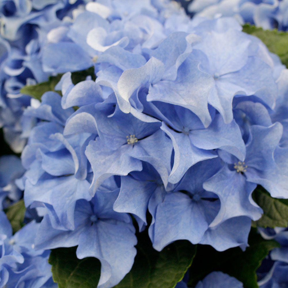 「クレイジーテンシア」は、縁が大きく波打ったフリル状の花弁が、ぎっしりと手毬状に集まって咲く華麗なアジサイです。