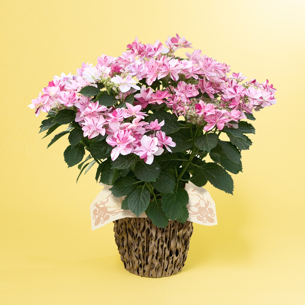 いつもとは違ったアジサイをお探しの方へ、イイハナ初登場の表情豊かなアジサイです。日常を彩るアートのような一鉢をお届けします。オンリーワンの個性を楽しむ衣純千織(いずみちおり)