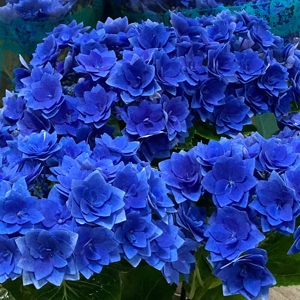 たくさんの星を散りばめたような、ボリューム感のある八重咲きのアジサイで、その一番の魅力は鮮やかなブルーの花色です。