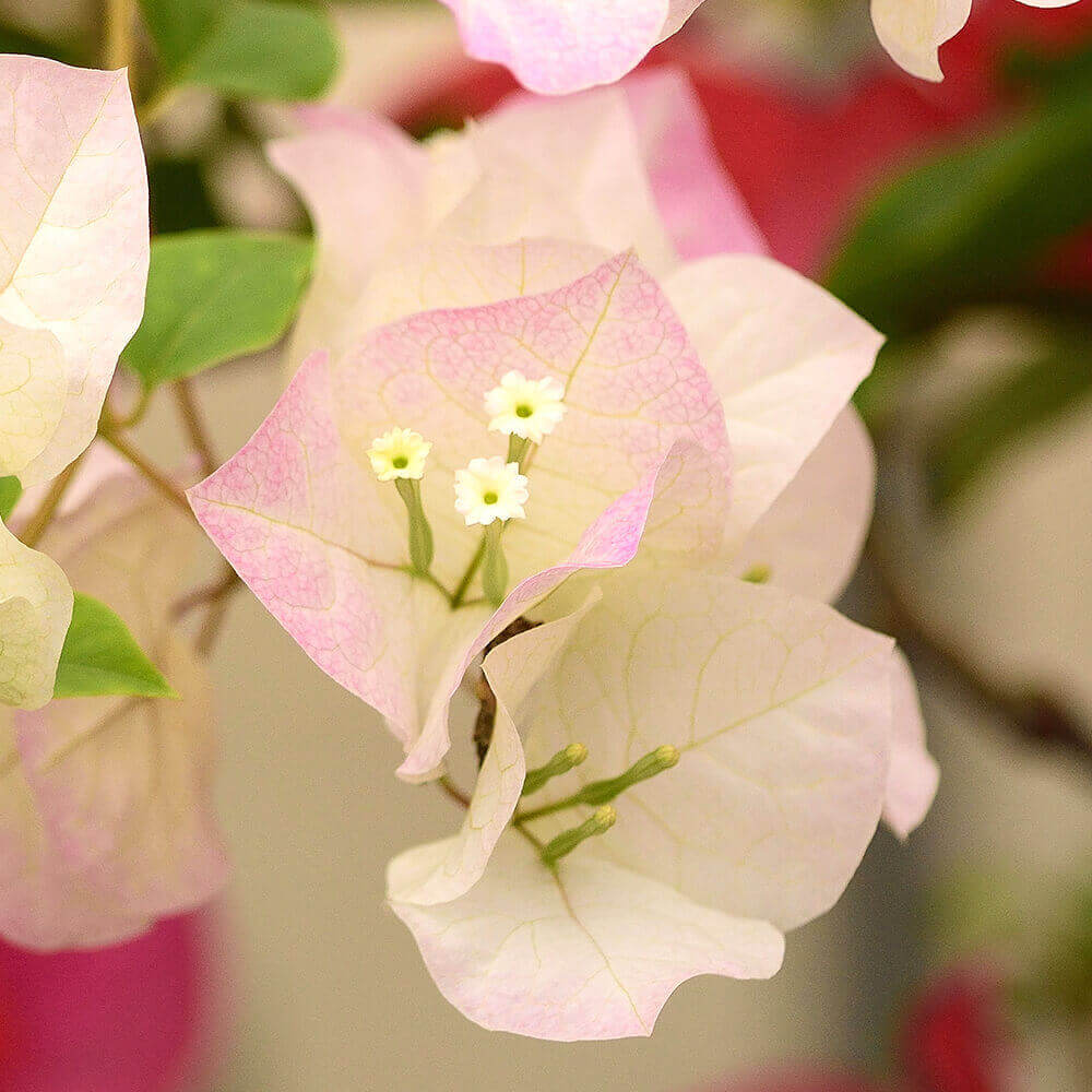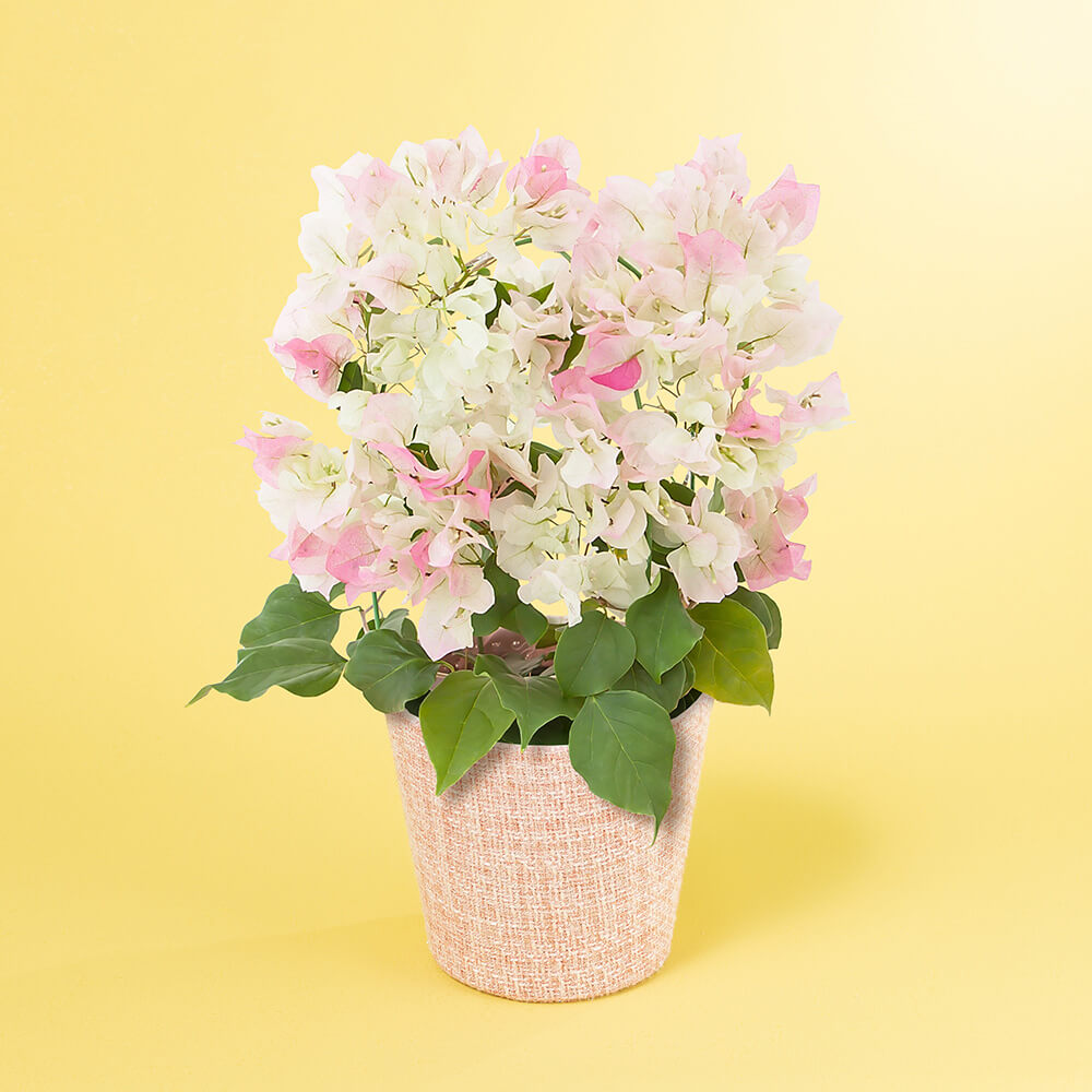 強い日差しの中で、爽やかに咲き誇る夏の花「ブーゲンビリア」。その中でも、クリーム地に淡いピンクがかった色合いがふんわりとした印象で人気の高い「ブライダルピンク」は、トロピカルさと優しさを合わせ持つこれから気温が高くなる季節にぴったりの贈り物です。