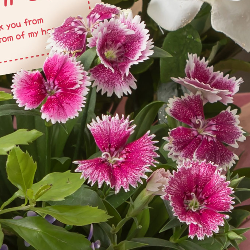 | 資材 | 母の日カードピック、ラッピングシート、バスケット入り、栽培説明書付き |