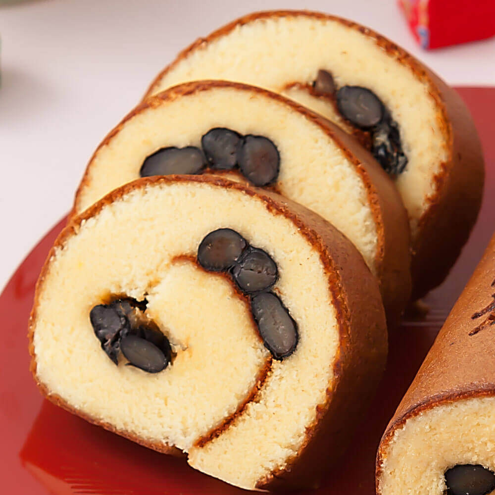小麦粉は国内産のみを厳選。味や食感のアクセントとなる黒大豆は、風味豊かな丹波黒大豆を使用しています。大粒なのにしっとり柔らかな食感と黒豆の自然な甘みが、ロールカステラにマッチして上品な味わいに仕上がっています。