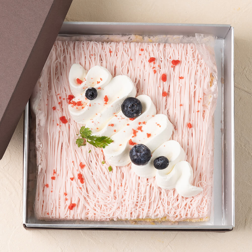 淡いピンク色のモンブランは、いつも家族のために頑張るお母様へのサプライズにぴったり。心ときめくティータイムを演出します。