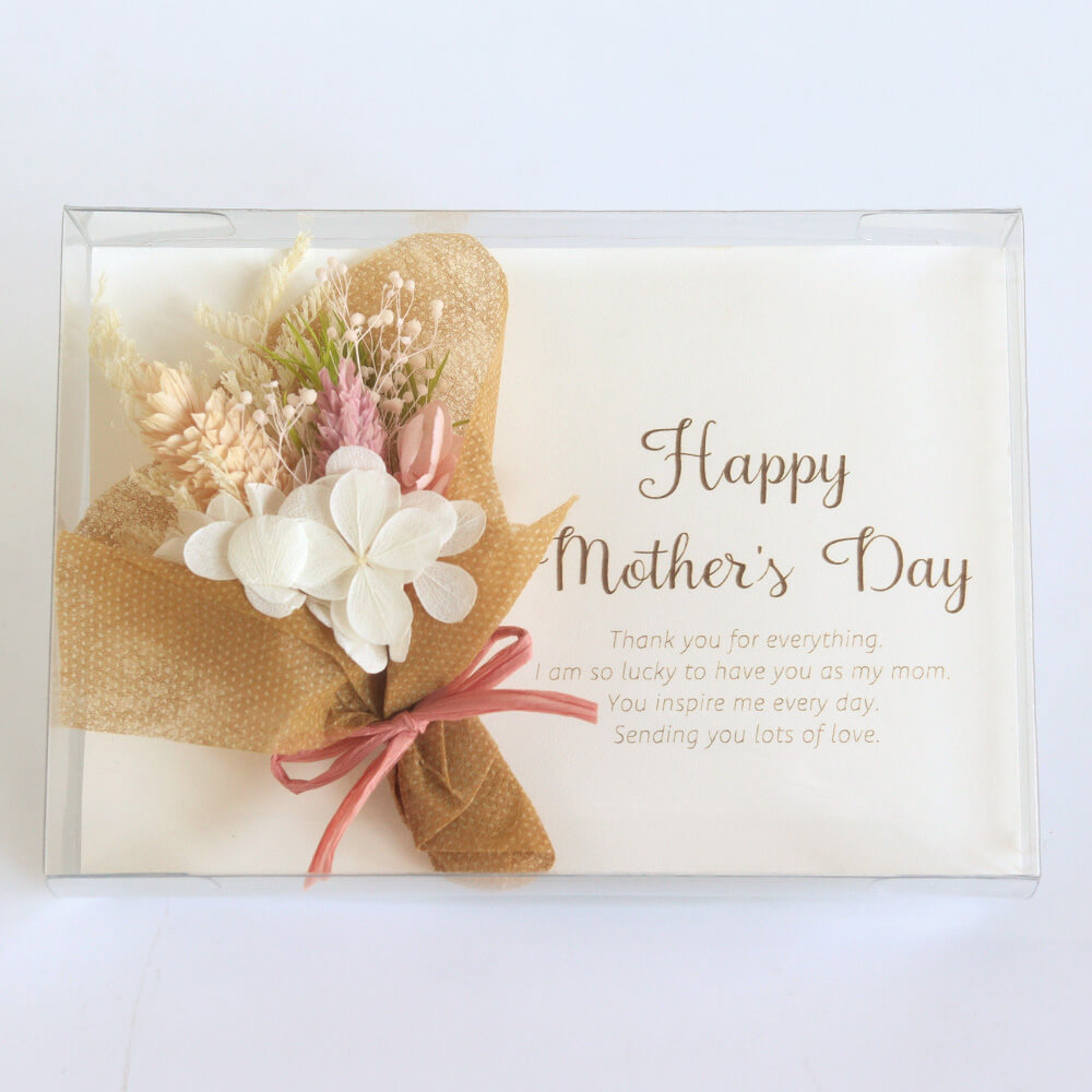 お母さんへ感謝を伝えるメッセージとともにプリザーブドフラワーをお届けします。