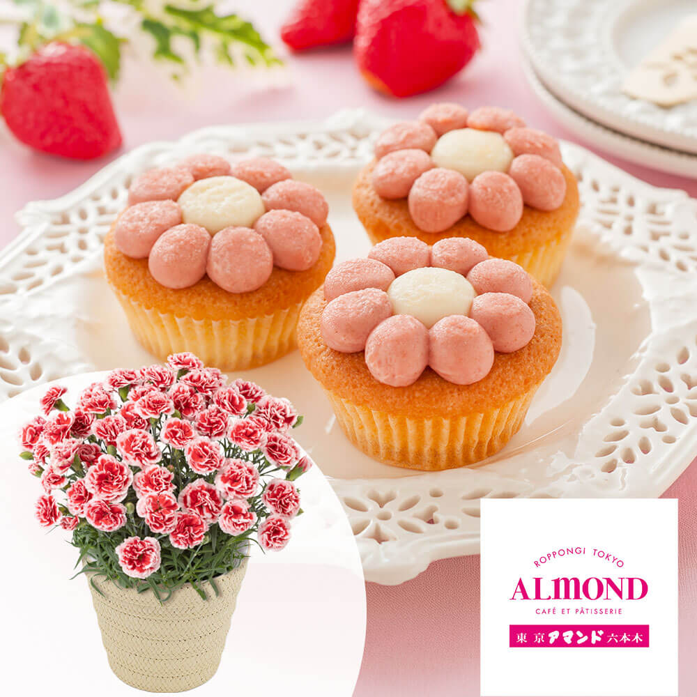 そんな「六本木アマンド」より、見た目も可愛らしいお花をかたどったカップケーキをお届けします。あまおう苺とホワイトチョコの2色のチョコクリームをお花の形にトッピングした可愛らしいカップケーキで、スイーツ好きお花好きなお母さんにお花尽くしのギフトはいかがでしょうか。