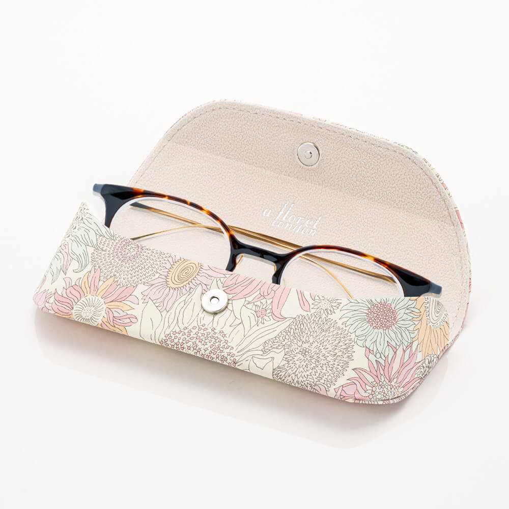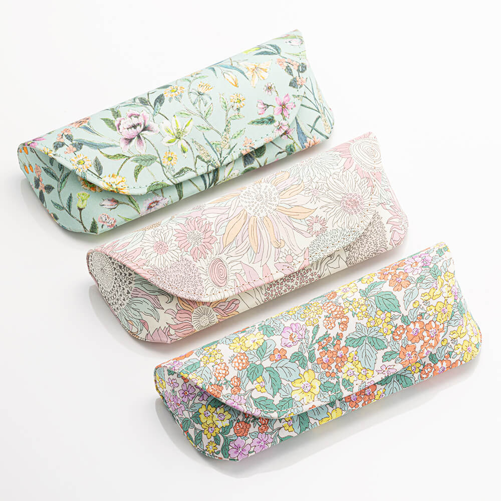 母の日にお届けするのは、リバティプリントのメガネケース。スッキリとしたフォルムのメガネケースは、内側にはスエード調の合皮を使用していますので、しっかりメガネを保護しつつも、ハードになり過ぎない女性らしい雰囲気が魅力です。お花が全面にあしらわれた3つのデザインよりお選びいただけます。
