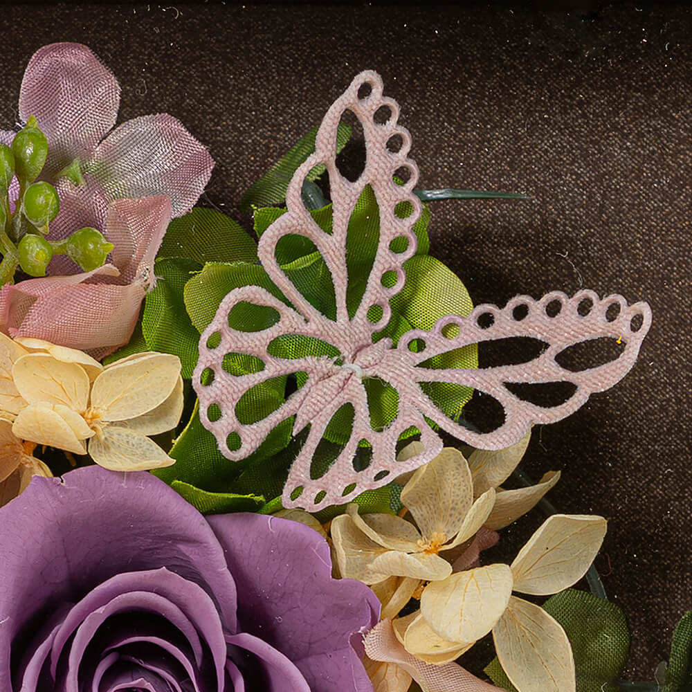 幸せを運ぶ「蝶」とバラのフレームアレンジ
