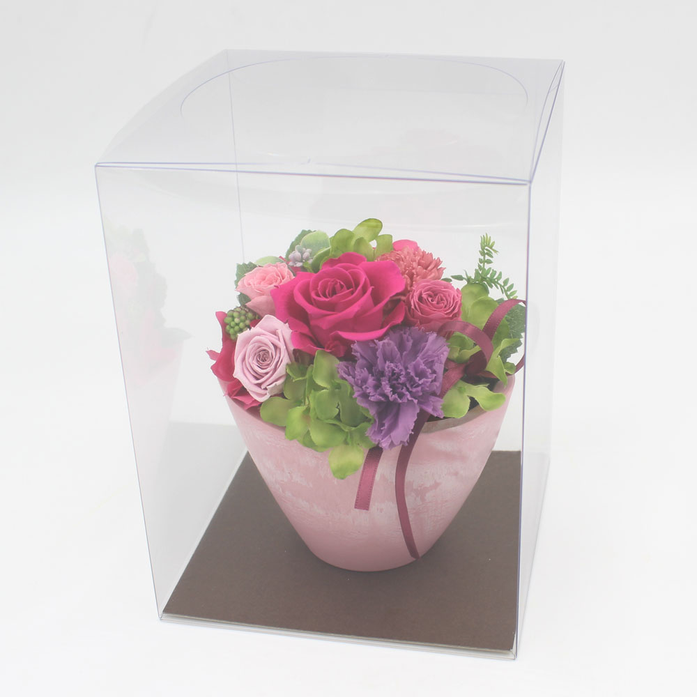 | 資材 | リボン、樹脂製花器、クリアケース入り、お手入れ説明付き |