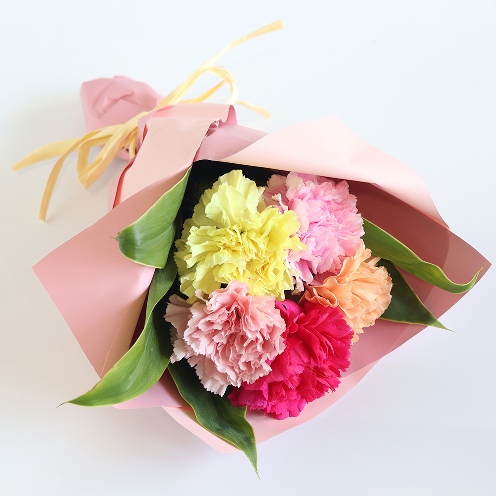 「ありがとう」を両手に。ミックスカラーのカーネーションを一緒にお届け