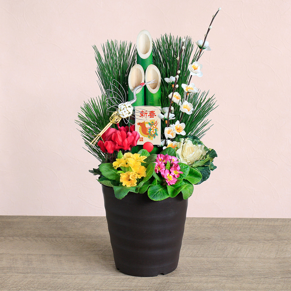 ・お正月(松の内)が終われば、松、3本組竹、梅、お正月ピックを取り外し、季節の寄せ植えとしてお楽しみください。