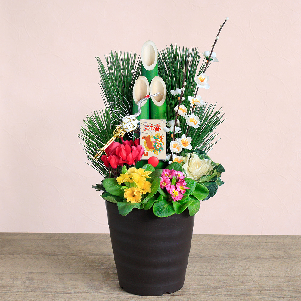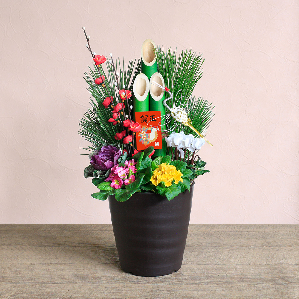 ・お正月(松の内)が終われば、松、3本組竹、梅、お正月ピックを取り外し、季節の寄せ植えとしてお楽しみください。
