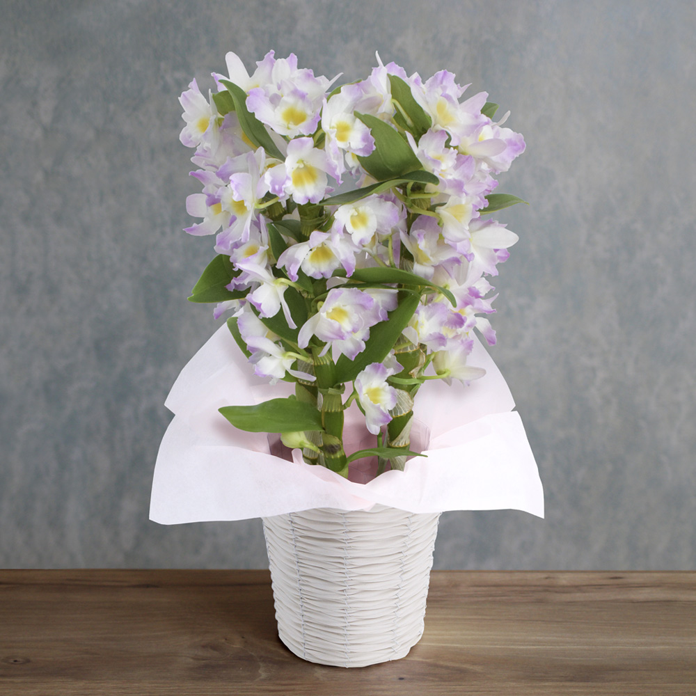 デンドロビウムは育てやすく、花持ちが良く贈り物としても喜ばれます。今回お届けするデンドロビウムは、ファンシーエンジェル・リセという品種で、華やかなピンクの花の中心には、黄色の模様が入り、華やかさ印象です。年末年始のご贈答用はもちろんですが、育てやすいので、お客様をもてなす玄関や客間用として、ご自宅用にもオススメです。
