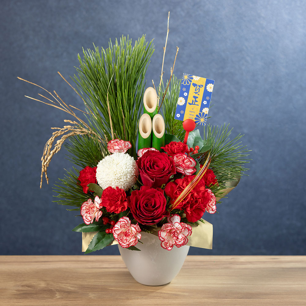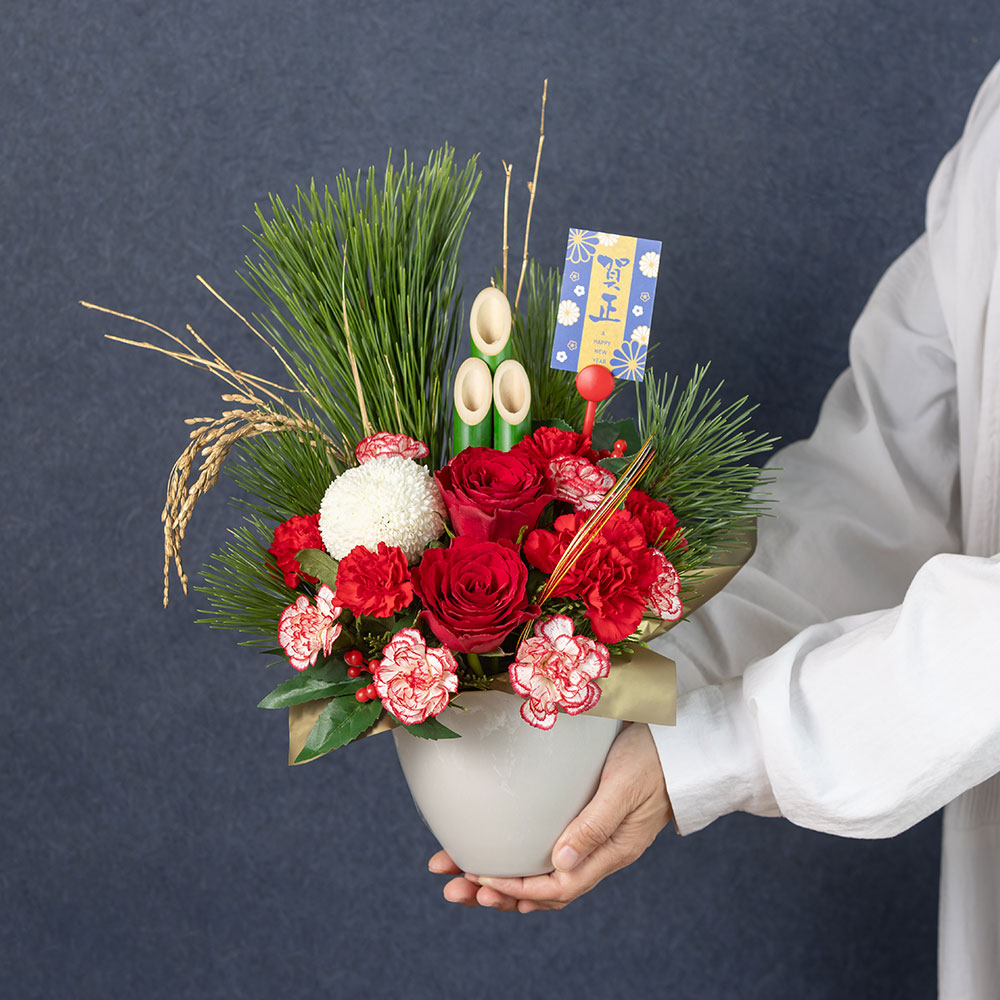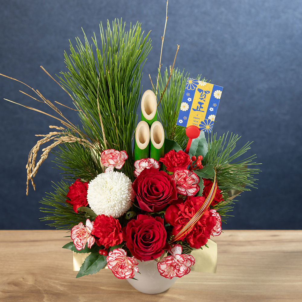 お正月 アレンジメント「門松〜紅白重ね〜」