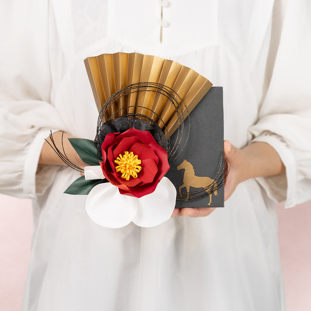 | 資材 | 金扇、水引、洋紙、和紙、台紙(馬の切り絵、壁掛け用吊り紐付き)、お手入れ説明付き |