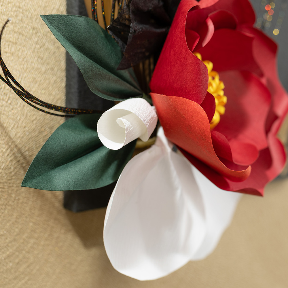 | 花材 | スーパーフラワー:紅椿、蘭の花弁、リーフ |