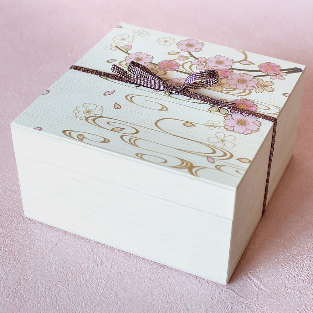 温もりある木箱に描かれた桜にうっとり・・・インパクト抜群の贈り物