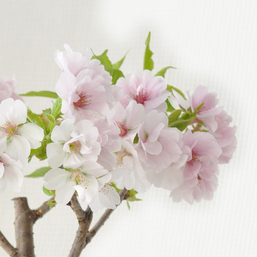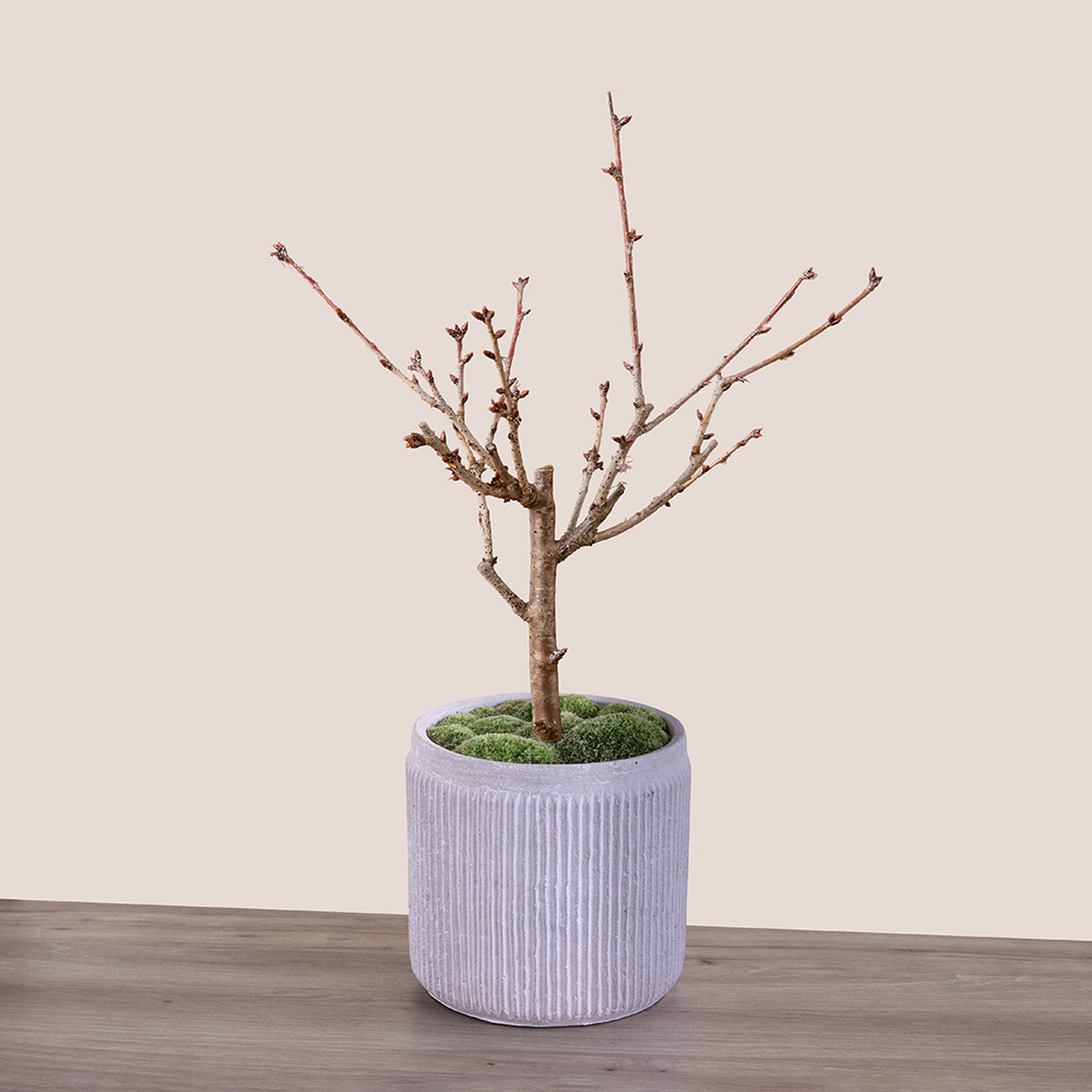 | 花材 | 南殿桜、苔 ※桜はつぼみの状態でお届けします。開花は3月下旬頃からになります。 ※花の付き方・枝ぶり・樹形は、個体差があります。 |