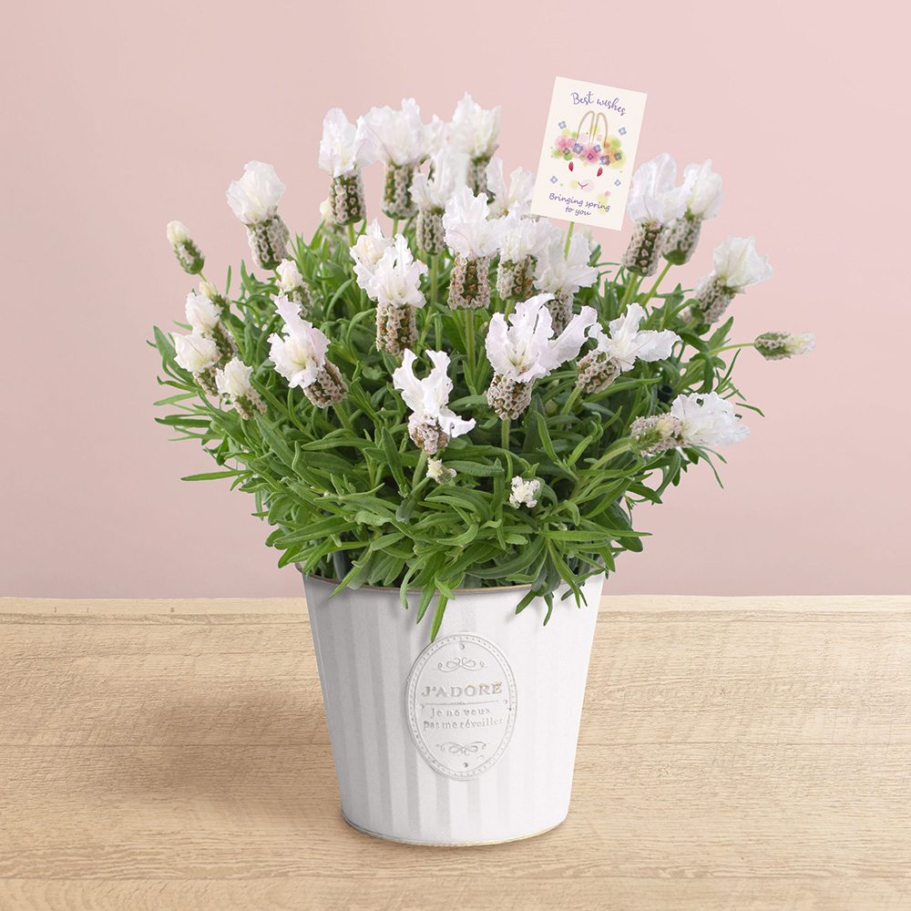 イイハナ・ドットコムの鉢植え フレンチラベンダーラベラ「ピュアホワイト」をギフトにいかがですか。全国配送やお届け日指定、メッセージカードもお付けいただけます。