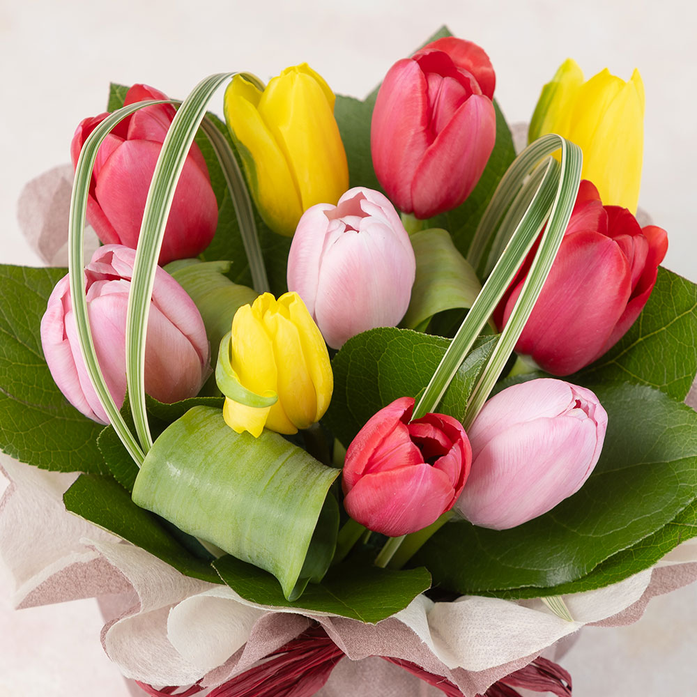 | 花材 | チューリップ(3種)×10輪、レモンリーフ、ミスカンサス ※チューリップは品種により咲き方が異なる場合があります。 |