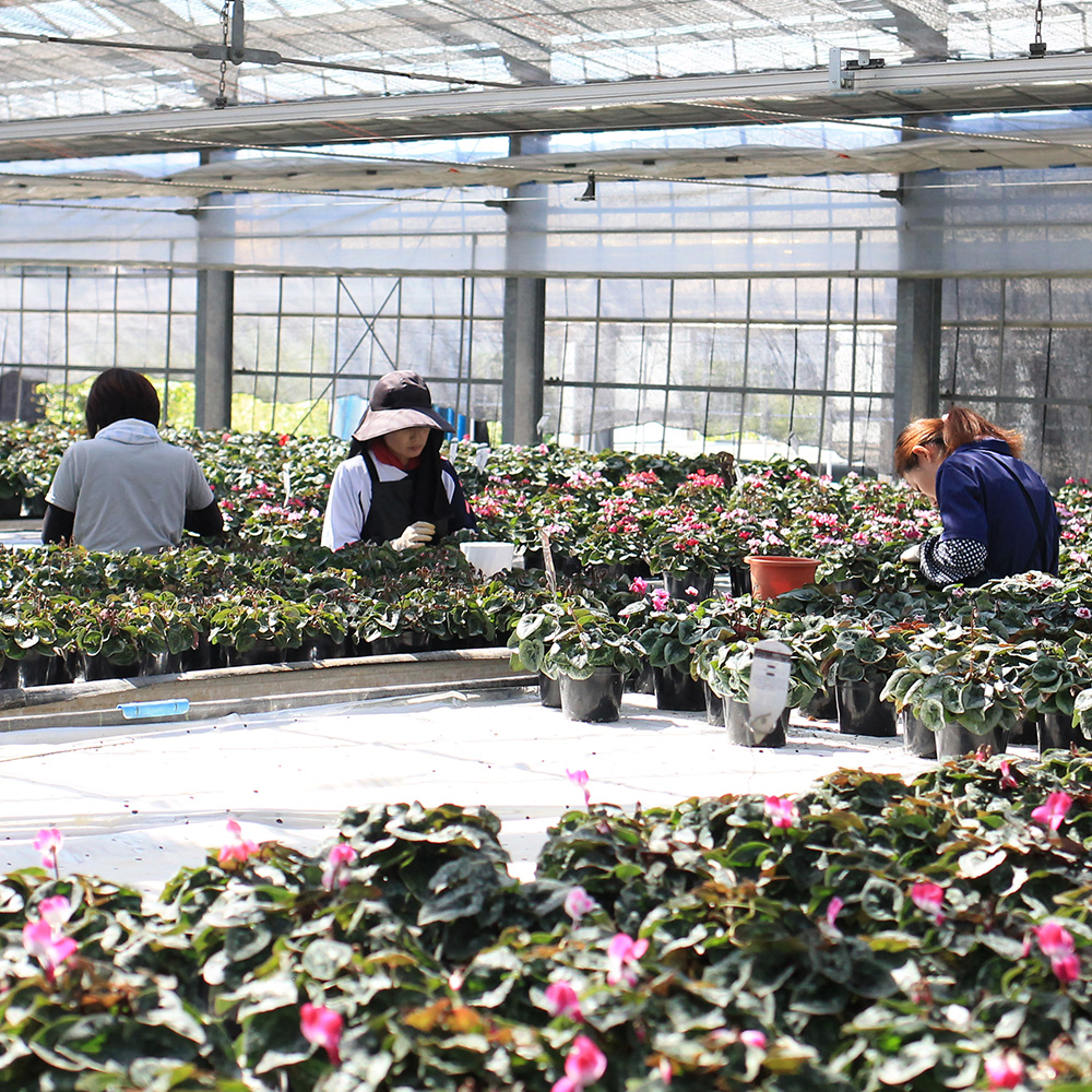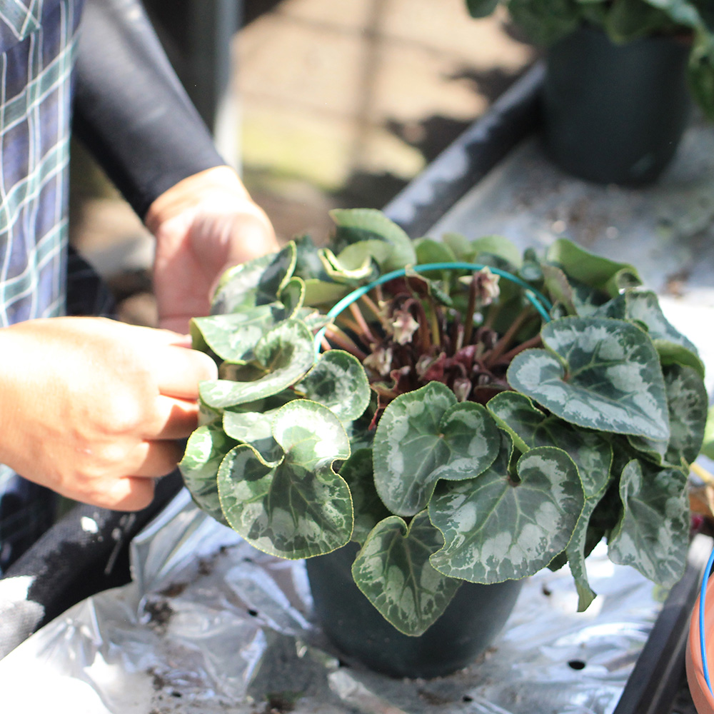 花を栽培して25年の大ベテラン谷澤園芸で愛情込めて育てられています。よりボリューム感のある株に仕上げるため葉組みを行うなど一鉢一鉢丁寧に管理がされています。
