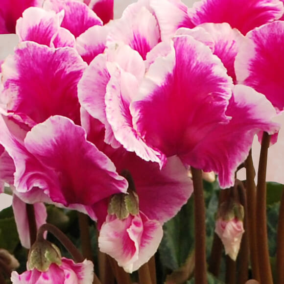 ひらりと優雅にウエーブした、2色の花びらがかわいいシクラメン!