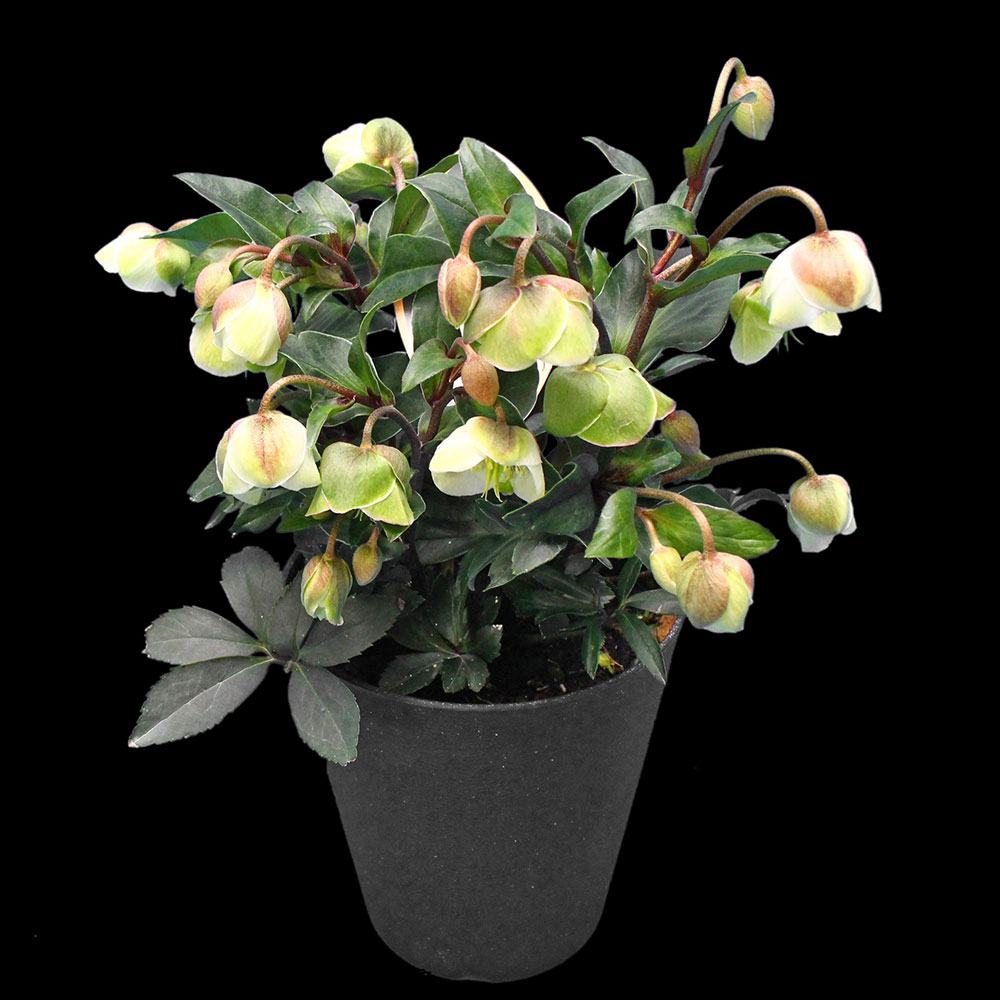 キリストの生誕を祝って咲いたといわれるクリスマスローズ。その名の通り寒い冬に、バラのように美しい花を凛と咲かせます。栃木県生産者「ジョルディ・カワムラ」さんのオリジナル品種で、ここでしか栽培されていいない希少なクリスマスローズです。落ち着いたグリーンを帯びた小輪のベル咲きの花をたくさん咲かせますので、見応えがあります。