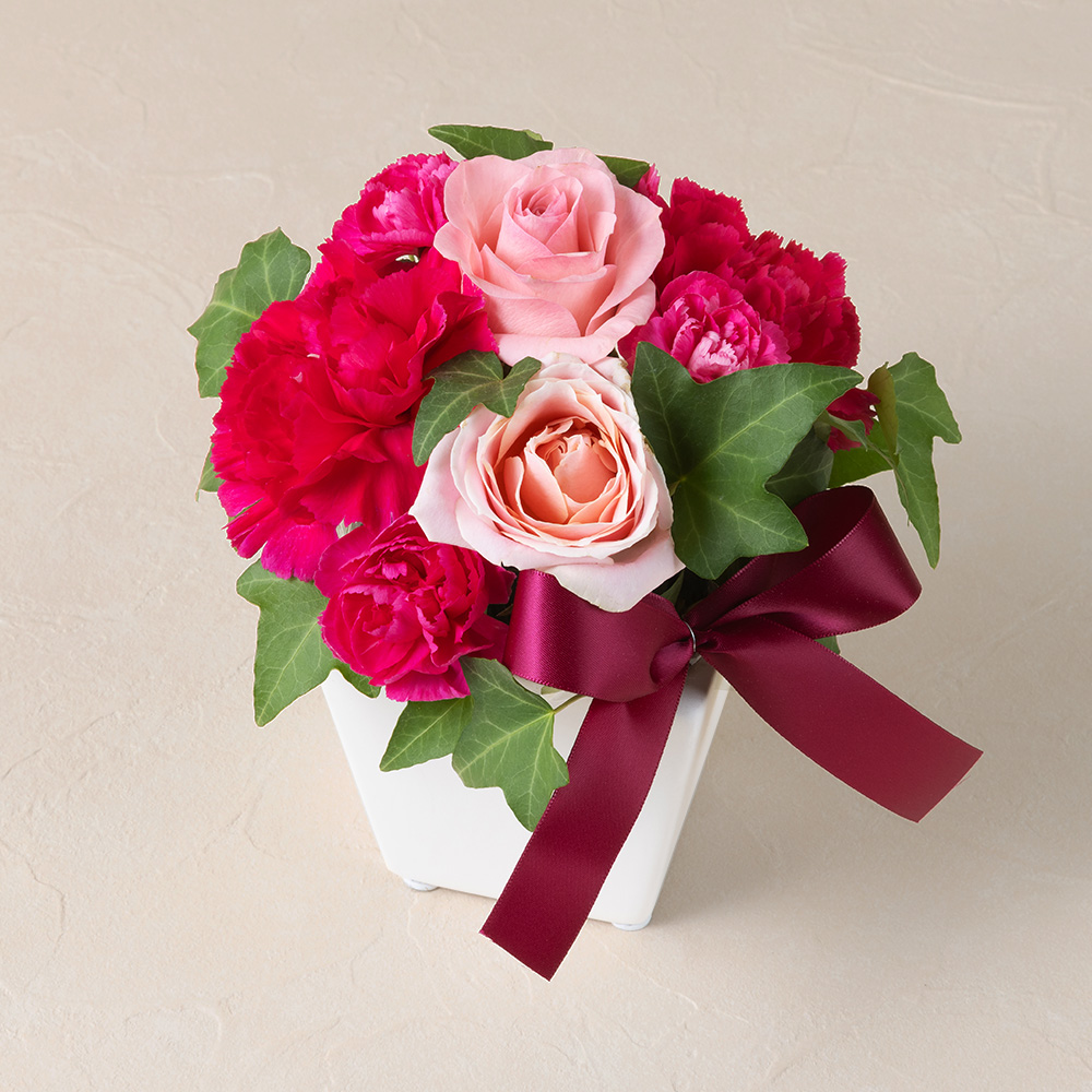 | 資材 | リボン、陶器製花器入り、お手入れ説明付き |