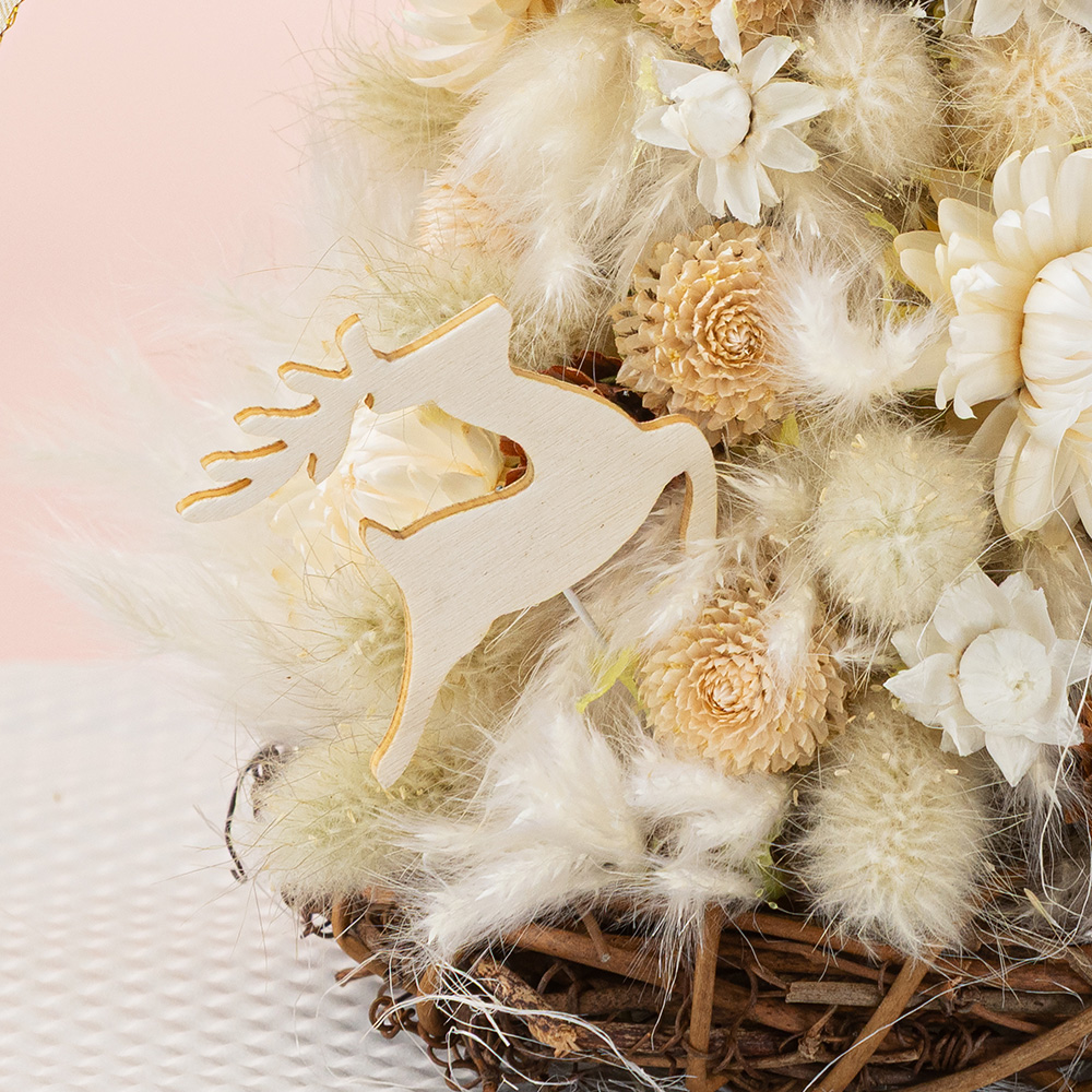資材 | 木製トナカイオーナメント、リボン、リースベース、お手入れ説明付き |