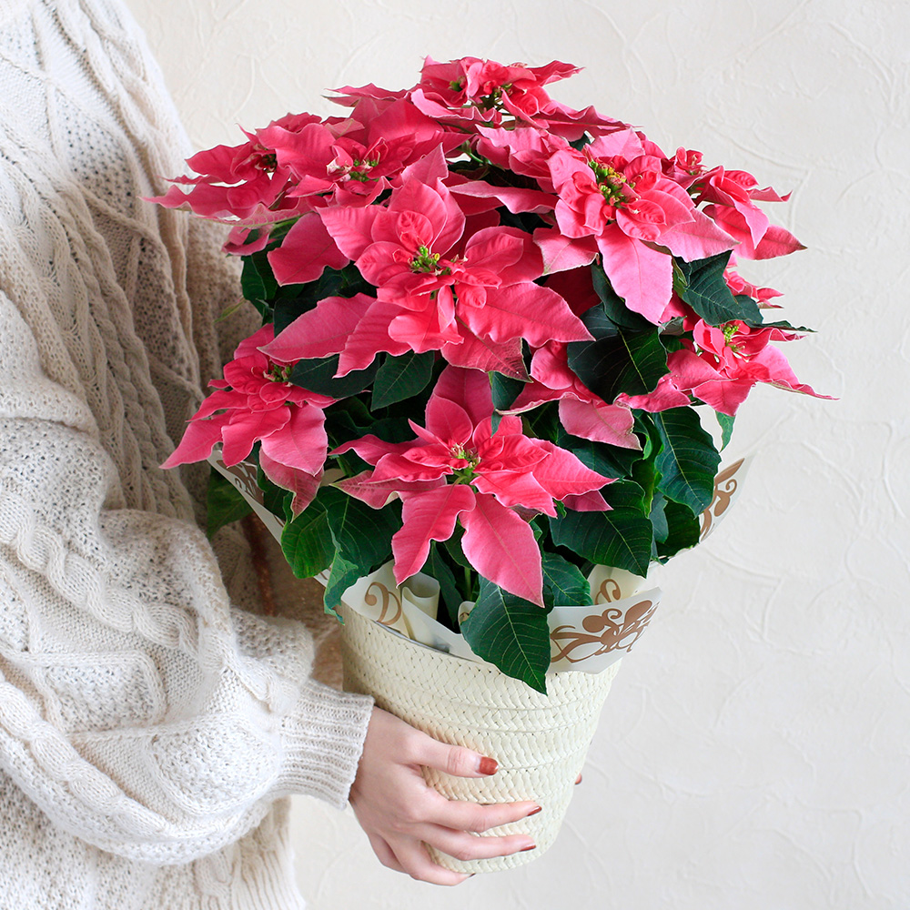 イイハナ・ドットコムの鉢植え「プリンセチアローザ」をギフトにいかがですか。全国配送やお届け日指定、メッセージカードもお付けいただけます。