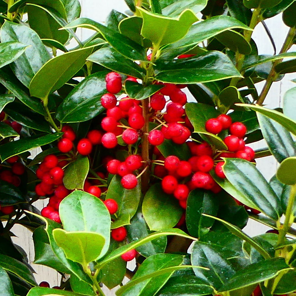 クリスマスホーリーは、ヨーロッパでは古くからクリスマスの象徴として愛され続けてきた伝統的な植物です。トゲのある葉はキリストの茨の冠を、赤い実はキリストの血を表すとされ、神聖な意味を持ちます。また、常緑樹であることから永遠の生命の象徴ともされ、魔除けの効果があると信じられてきました。