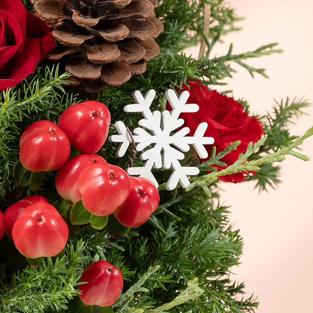 テーブルに飾りやすいコンパクトさと生花ならではのフレッシュ感が魅力のツリーで、お部屋に置くだけでクリスマス気分をグッと盛り上げてくれることでしょう。