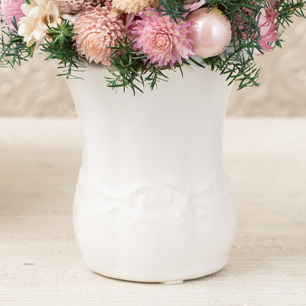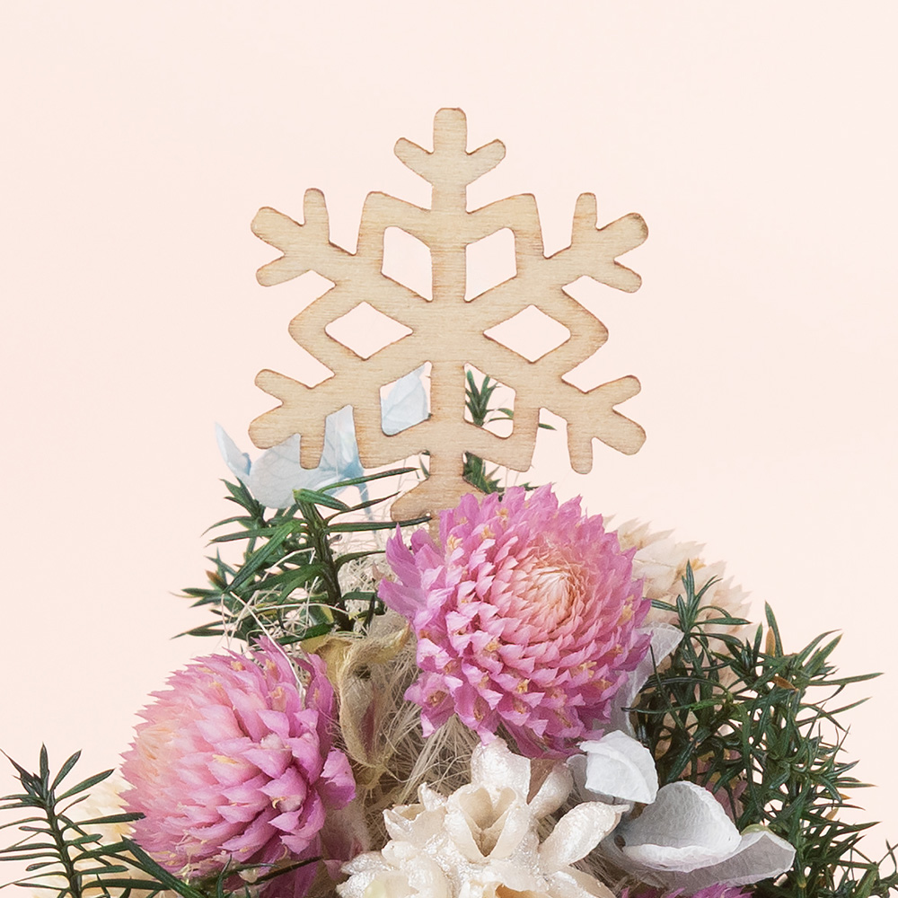 資材 | 木製スノーフレークオーナメント、パールピック(ピンク)、陶器製花器、お手入れ説明付き |